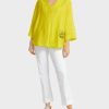 Blúz pamutban selyemmel. Nem csak a kiváló minőségű anyag teszi ezt a blúzt a nyár kedvenc darabjává. Lenyűgözően alkalmi illeszkedést is kínál. Az elülső rész V-nyakkal rendelkezik, míg a hát egy összegyűjtött peplummal rendelkezik. A motorháztetőt egy zsinórral is be lehet állítani. A raglan hüvelyek széles derékpánthoz vezetnek.