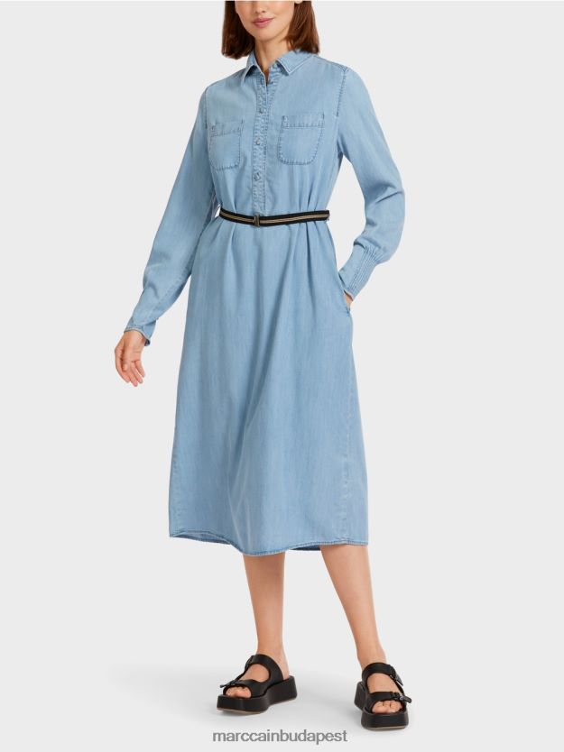 Ez a farmer ruha pamut és lyocell keverékben van, és a “Rethink együtt” fenntarthatósági címkét viseli. Kissé felgyulladt, és oldalsó varrás zsebekkel rendelkezik. A hátulján és a hüvelyben lévő Pintucks nőies érintést kölcsönöz a formatervezésnek. A hüvely szélessége két gombon és hurkon keresztül állítható. A derékot egy sportos striával hangsúlyozhatjuk