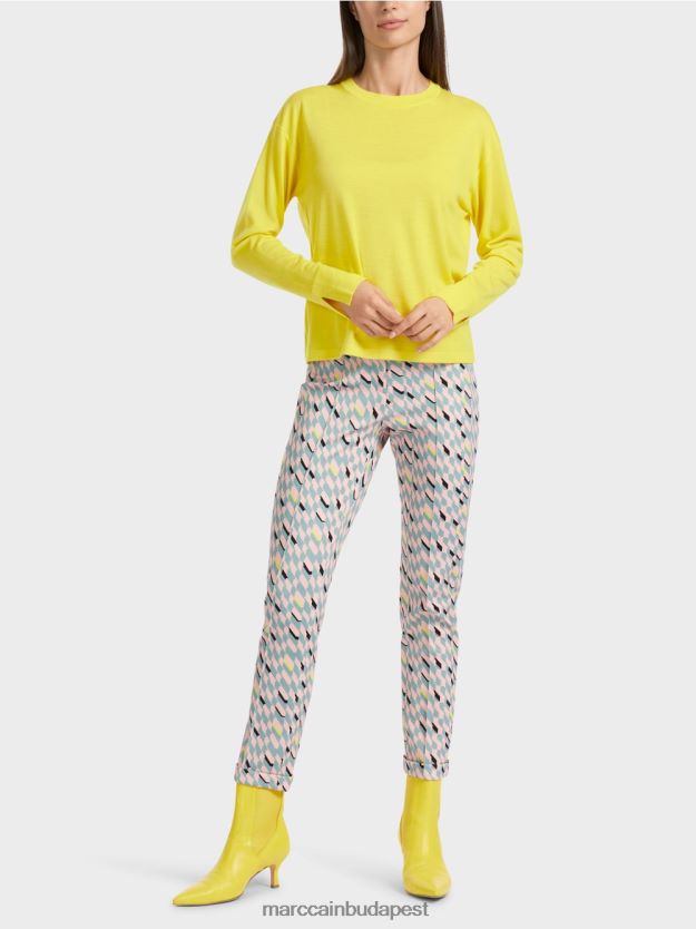 Alkalmi vágott pulóver a “Rethink együtt” fenntarthatósági címkéből. Ez a pulóver könnyű, kötött anyagból származik, amely 100% szűz gyapjúból készül. Kerek nyakkivágással és hasított mandzsettával rendelkezik. Egy kicsi, fényes arany Marc Cain logót a hátra varrnak a nőies érintés érdekében.