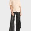 Az anyagok keveréke, amely a póló blúzszerű érzetét adja: A hát és az ujjak rugalmas mezből készülnek, míg az elülső lágy folyó anyagból készül. A nyakkivágást bordázott kötéssel vágják. A blúz alakja nőies: keskeny vállával és hüvelyével kezdve a test kissé felgyullad. A szegélyt kis oldalsó résekkel ékezetes.