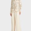 laza blúz V-nyakú és középső varrással. A geometriai minta érdekes megjelenést kölcsönöz ennek a blúznak. Laza sziluettben érkezik, és középső varrással rendelkezik. Keskeny mandzsetta fémgombokkal és a kis stand-up gallér V-nyakkal hangsúlyozza a blúz kialakítását.