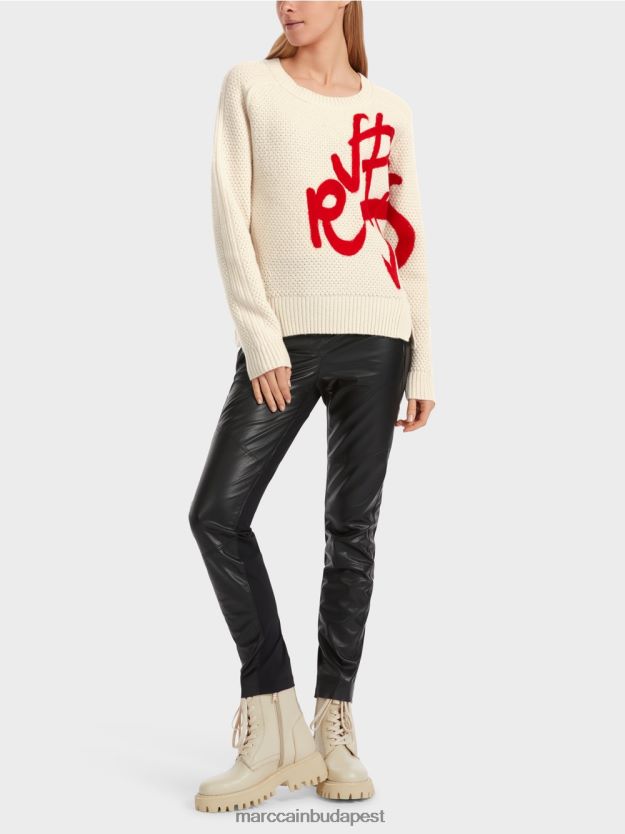 A kötött pulóver elegáns gyapjúkeverékből készül, és a “Rethink együtt” fenntarthatósági címkét viseli. A levélmotívum a campus stílusának divatos értelmezését tartalmazza. A formákat kifinomult nemezelési technikával alkalmazzák a kötésre. A vágás szintén eredeti: a hát hosszabb és szélesebb, mint az elülső – hűvös hatást vált ki a dekonstrukcióra.