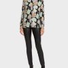 Ennek a pöttyös blúznak a kialakítása minimalista és alapvető fontosságú. A gombos placket elrejtve van, és az ujjait rugalmas díszítéssel készítik. A szövet lágy sziluettet ad a dobozos formának.
