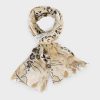 Színes sál pamutban selyemmel. Az aszimmetrikus csíkok vidám keveréke biztosítja ennek a sálnak a megkülönböztető megjelenését. A lágyan drapírozott stílusával is kiemelkedik. És bár a hosszú oldalak finoman borítják, a keskeny végeken a rövid rojtok hangsúlyozzák a nyugodt stílust.
