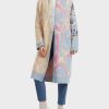 Egyenes vágott steppelt kabát újrahasznosított béléssel. A toll és lefelé történő melegítő töltésével ez a kabát ideális társ a hideg téli napokon. Jön oldalsó zsebekkel és egy sávos stand-up gallérral. A kialakítást egy leesett derék, valamint egy cipzárral és megfelelő sajtócsukkal egészíti ki.