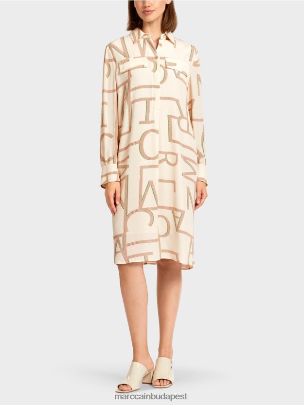 ingruhát egyenes vágással. A ruha kis selyemtartalma biztosítja a kényelmet és a gyönyörű kendőt. A felső szakaszban egy álfedő mell zsebével és egy rejtett gombos plackettel rendelkezik. A stilizált egész MC betűk érdekes mintát hoznak létre.