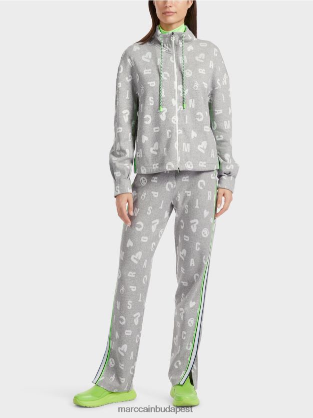 A kabát szuper finoman kötött. A vágás dobozos, az ujjak alacsonyan vannak beállítva. A hüvely szélessége a szegélyben redukálódik a dartsokkal. A kabát elülső részén kétirányú cipzárral rögzíthető. Az stand-up gallér szélességét húzózsinórral lehet beállítani. A kabát sportos karakterét az oldalsó varrás mentén háló szegélyek hangsúlyozzák.