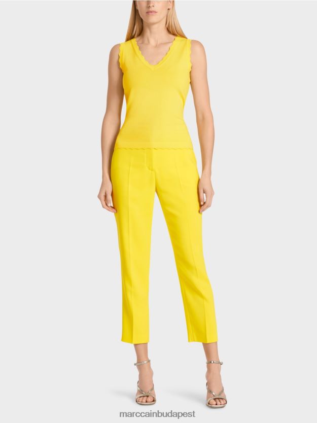 Ennek az ujjatlan felsőnek egy belemerelő V-nyaka van, amely levegős és kényelmes viselet. Finom viszkózus fonalba van kötve, és kellemesen hűvösnek érzi magát a bőr ellen. A hullámos burkolat a szegély, a nyak és a karflyukon egy szemet gyönyörködtető tulajdonság.