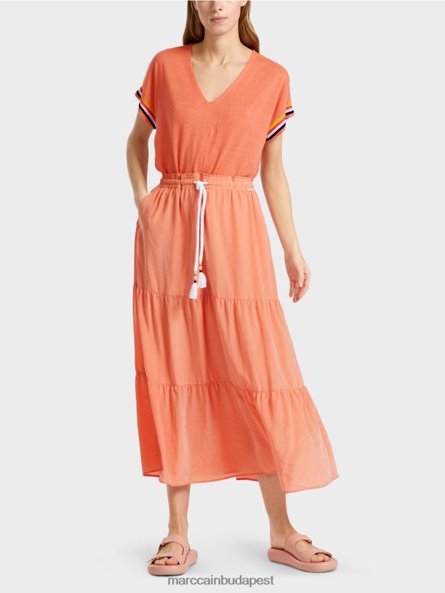 Lágyan drapírozott szoknya egy szép A-vonalú sziluettben. Ez a midi hosszúságú, egyszerű színekben lévő szoknya az ideális nyári alap. A rajzolt derékpánt húzózsinórral nagyon kényelmes viselet. A gyakorlati oldalsó zsebek helyet biztosítanak minden alapvető elemnek.