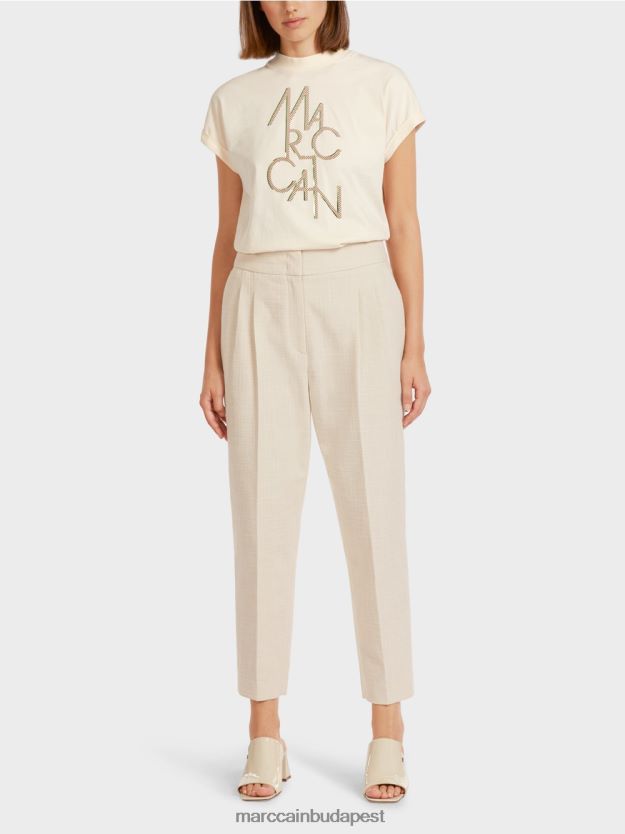 Klasszikus pamut nadrág préselt gyűrővel és oldalsó zsebekkel. Ezek a nyári nadrág széles lábat büszkélkedhet. Ezek egy vászon megjelenésű pamutkeverékből készülnek, így különösen kényelmesen viselhetők. A nadrág két horoggal és egy cipzárral van rögzítve. Két oldalsó hasított zseb és Welt zseb kerekítse le a kialakítást.