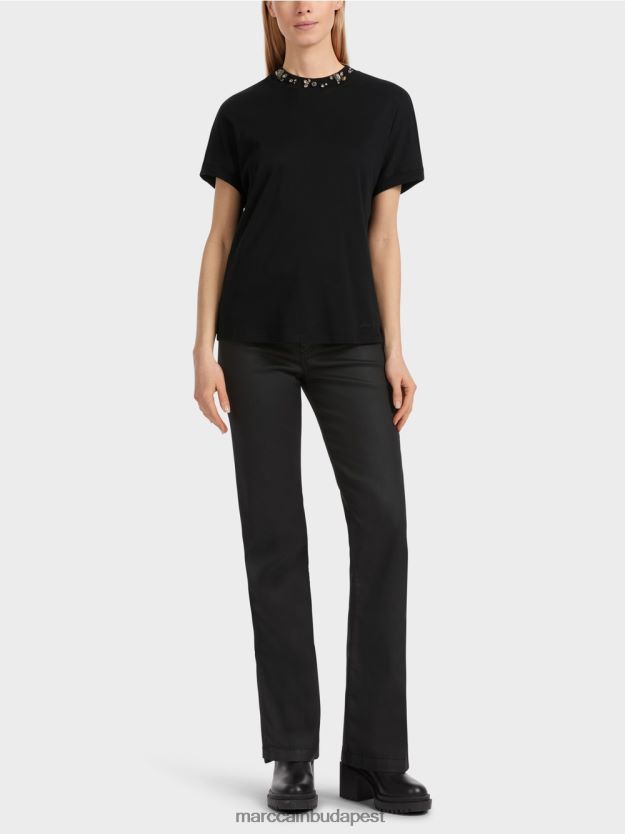 Laza póló pamutból készült. Ennek a pólónak a szemgyűjtője a fényes gyöngy hímzés az stand-up galléron. A vágott hüvelyekkel rendelkező kialakítás ugyanolyan szokatlan. Az egyenes sziluett egy adag alkalmi képességet hoz erre a nőies tetejére.