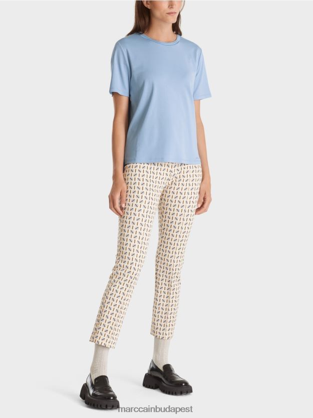 pamutból készült póló, elasztán tartalommal. Ez a sima színű póló széles legénység nyakkivágással érkezik, amelyet alkalmi cikcakk hímzéssel díszítettek. Ezenkívül az ing kissé felszerelt és meghosszabbított háttal rendelkezik. A negyed hosszúságú ujjak befejezik a formatervezést.