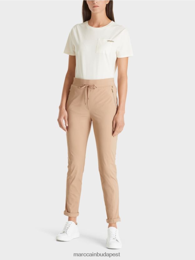 A könnyű nyújtási anyag miatt És a nyugodt vágás, a Ribera nadrág tökéletes viselési kényelmet kínál. A széles, elasztikus derékpánt fémelemekkel rendelkező zsinórral rendelkezik. Dekoratív varratok és oldalsó zsebek cipzárral teljesítik az általános megjelenést.