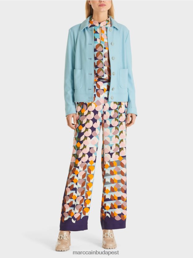 sima dzseki egy figurás vágásban. Ez a rövid dzseki viszkóz keverékben van az elasztánnal, és a nyújtott szövetnek köszönhetően kényelmesen viselkedik. Bécsi varratokkal rendelkezik, és egy szegély sáv és középső varrás található. A megfelelő gombok az MC betűkkel dekoratív részleteket adnak hozzá. A javítózsebek és a gallér befejezik a sportos megjelenést.