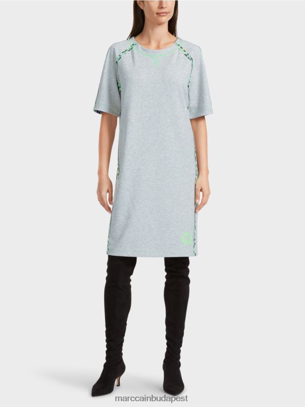 A ruha raglan ujja van, és széles és egyenes. A kettős arcú anyag puha és rugalmas. A belső rész foltos. A külső külső graffiti-szerű nyomtatványt tartalmaz stilizált szívekkel és betűkkel. Az élénk akcentusokat fluor színű varrással állítják be.