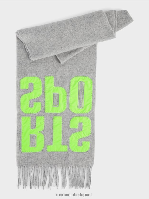 A sál puha, gyapjú alapú rostkeverékből készül. A szemgyűjtő a “Sport” felirat. A betűk kontrasztos anyagból készülnek. Mivel ezek kézzel varrott applikációk, csináld magad (DIY) karakterük. Az elem az oldalán lévő sarokkal készül, és a végén hosszú rojtok vannak.