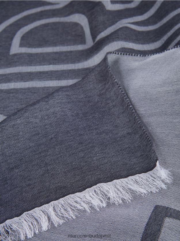A hosszúkás sál könnyű viszkóz modális anyagkeverékből készül. A modell kényelmesen fészkel a nyakához, és gyorsan kedvenc darabjává válik. További kiemelt események közé tartozik a feltűnő logó és a rövid oldalon lévő kontrasztos béren kívüli burkolat.