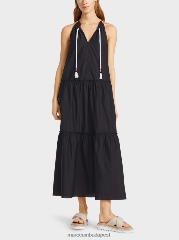 ELLSŐK ALYAM, Sportos kialakításban, pamutban és selyemben. Ez a kivételes ruha egyesíti a sportos elemeket az elegáns részletekkel. Van egy romantikus kötőfék nyaka, amelyet egy zsinór véletlenszerűen összegyűjt és színes vezetékes szalaggal díszít. Elöl és vissza V-alakú kivágások vannak, hogy megmutassák a barnulást. A szoknya fellendülése azt jelenti, hogy a vágás A-vonal alakja. Az oldalsó zsebek javítják a kényelmet.