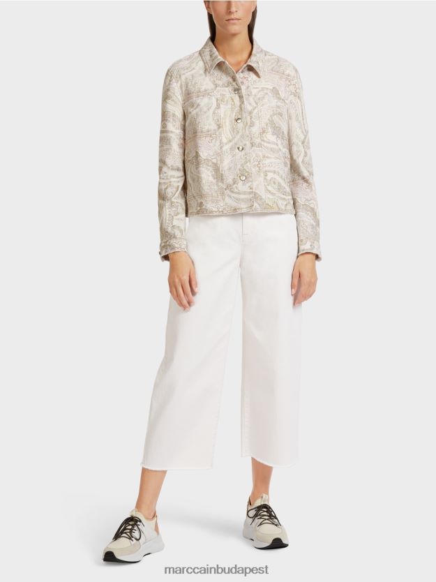 A kabát organikus pamutból készül, és a “Rethink együtt” fenntarthatósági címkét viseli. Ez az elem farmer dzseki stílusban kapható, és nyers szélével büszkélkedhet a szegélyén rojtokkal. A szélesség hátulján húzózsinórral állítható be. Az elülső oldalsó hasított zsebek integrálódnak a varrásba.