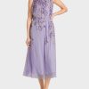 Ez a hosszú ruha panelekben van felépítve, és a szegély felé fordul. A panelek a hercegnő varrásaiból származnak, elöl és hátul. Romantikus részletek: A finom virágos applikációk az ujjakon és a dekolleten. Hátul egy varrás cipzárral rögzül. A bélés miatt átlátszatlannak tűnik. Ez a ruhadarab a “Rethink együtt” fenntarthatósági címkét viseli.