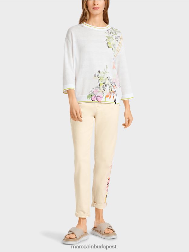 Alkalmi kötött pulóver anyagi keverékben. Ennek a pulóvernek a bal oldalán virágmintája van. Széles sziluettjeiben leesett vállak és a legénység nyaka. A pulóver kötött és befejeződött a németországi helyiségünkön. Az egyes darabok további feldolgozását az európai partnervállalatok végzik. Ez teszi az elemet “Németországban kötve”.