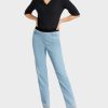 Warri öt zsebű farmer Alkalmi széles lábú. Az applikációk trópusi növény- és állatvilág motívumaival rendelkeznek, és csillogó flitterekkel vannak díszítve. A tonális varrás finom kontrasztokat hoz létre. Hűvös részlet: A kopott szegélyek.