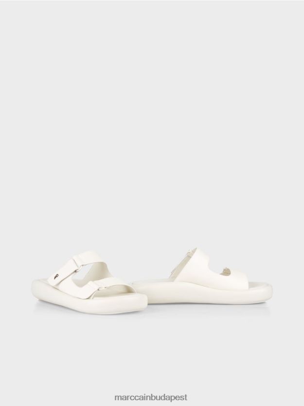 kortárs szandál 100% bőrben. A talp lekerekített alakja önmagában modern akcentust ad ezeknek a szandáloknak. A talp hangok tökéletesen a két bőrpántokkal. Ezeknek fém szemét és egy kis MC logóval érkeznek fémben. Gyakorlati részletek: A felső heveder külön -külön beállítható. Ezek az öszvérek a csúszás nem csúszásukkal is lenyűgöznek, köszönhetően a talpon lévő baromi alaknak.