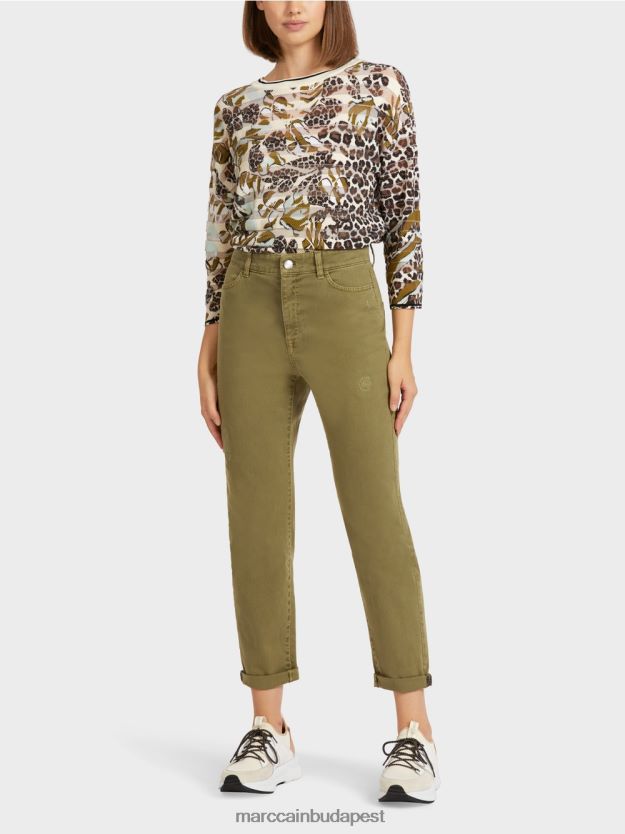 Ezek a farmerek organikus pamutból készülnek, és a “Rethink együtt” fenntarthatósági címkét viselik. Ezeknek a farmereknek a magas derékpántja van. A csípőn is laza és kúpos lábuk van. A könnyű mosás és a javítási stílusú foltok ugyanabban az árnyékban, mint a farmer, finom „használt” hatást adnak nekik.