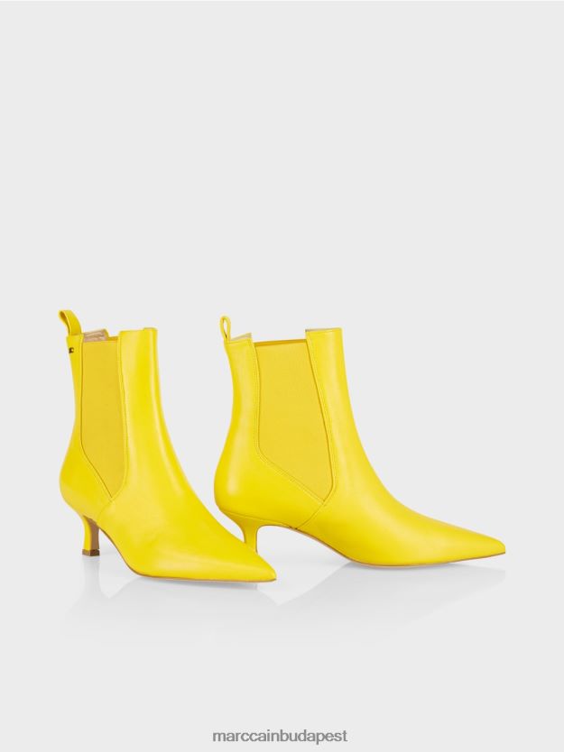 Magas bokacsizma rugalmas betéttel. Ez a bőr boka csomagtartó nőies, kúpos alakú. A magas cica sarkú bőr borítóval hangsúlyozza a kifinomult karaktert. Annak érdekében, hogy könnyen felhelyezzék őket és felszálljanak, a csizma rugalmas betéttel és átlátszó hevederrel érkezik. Fényes részlet az MC logó a mandzsettán.