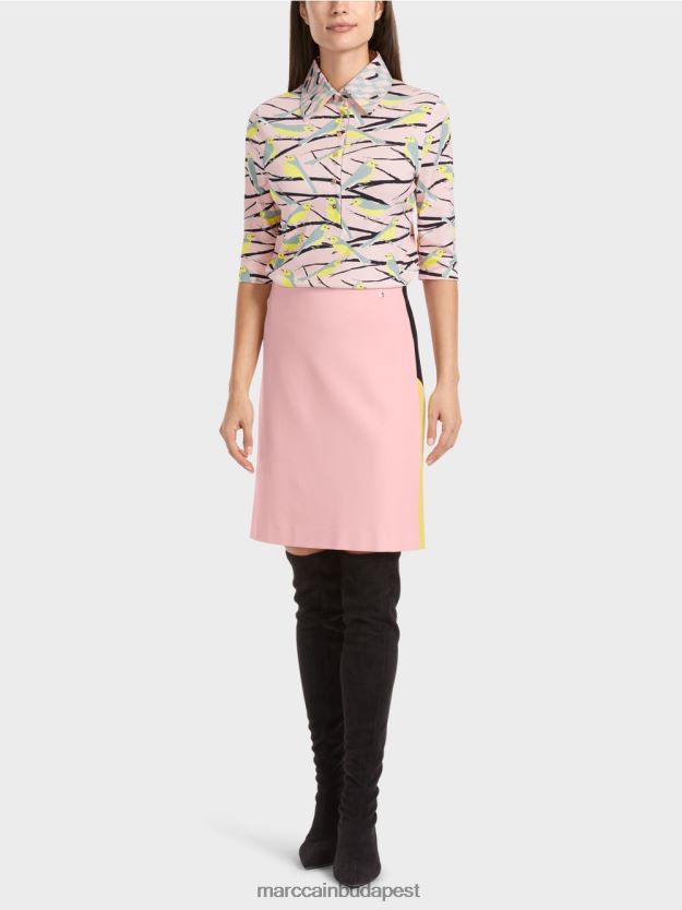 Lágyan leeső szoknya egy anyagkeverékben viszkóz és pamut. A zsinórcsíkok színes blokkoló kialakításban kölcsönadják ezt a mini szoknyát a speciális karakterének. Ellenkező esetben a színeket kissé fellendült alakú. A rejtett gomb rögzíti és a hátulsó cipzárral van rögzítve.